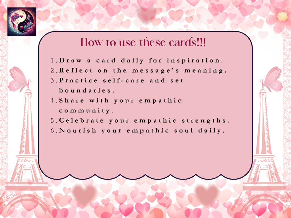Embrace the unique strengths and compassion that define you as an empath. These cards are not just cards; let them be your daily companions on this beautiful voyage of self-love, understanding, and empowerment.
